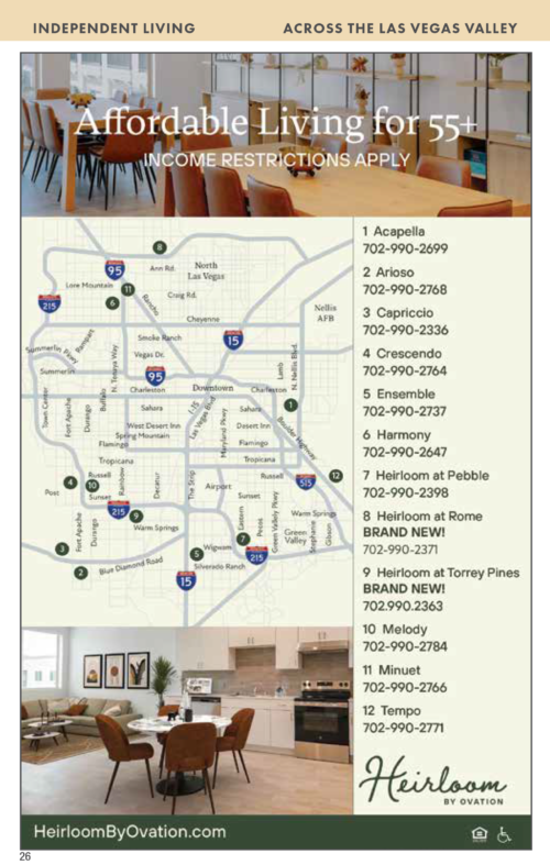Come experience our acclaimed amenities and stunningly appointed interiors in Las Vegas’ most sought-after locations. You’ll feel instantly connected to the community and companionship you desire while benefiting from high-end finishes, spacious floor plans, carefree maintenance and the premier service that can only be provided by a recognized leader in senior living. It is time to live the life you deserve.