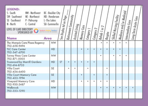 Nevada Senior Guide: Level of Care Directory – LAS VEGAS